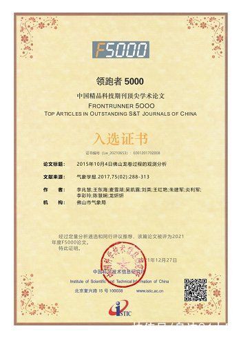 《气象学报》继2003、2004、2005、2006、2007、2009、2016、2019年之后再次入选2020年度中国百种杰出学术期刊。感谢各位编委和广大作者的大力支持。经过定量分析遴选和同行评议推荐,《气象学报》有1篇文章入选2021年度F5000论文。