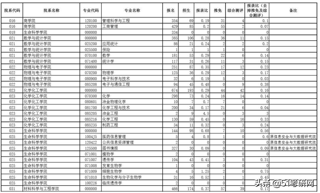 注:相对报录比=录取人数/报名人数;绝对报录比=(录取人数-推免人数-综选人数)/(报名人数-推免人数-综选人数)