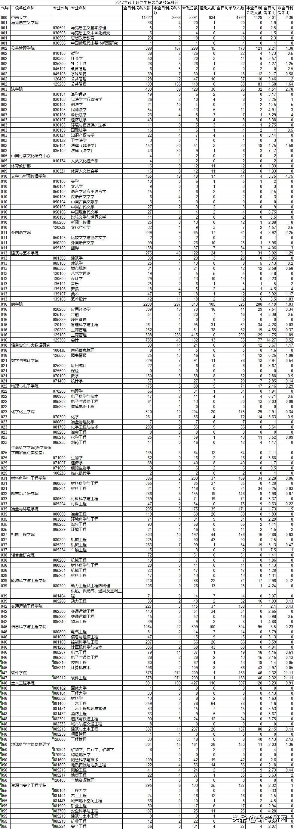 中南大学2017年报录比