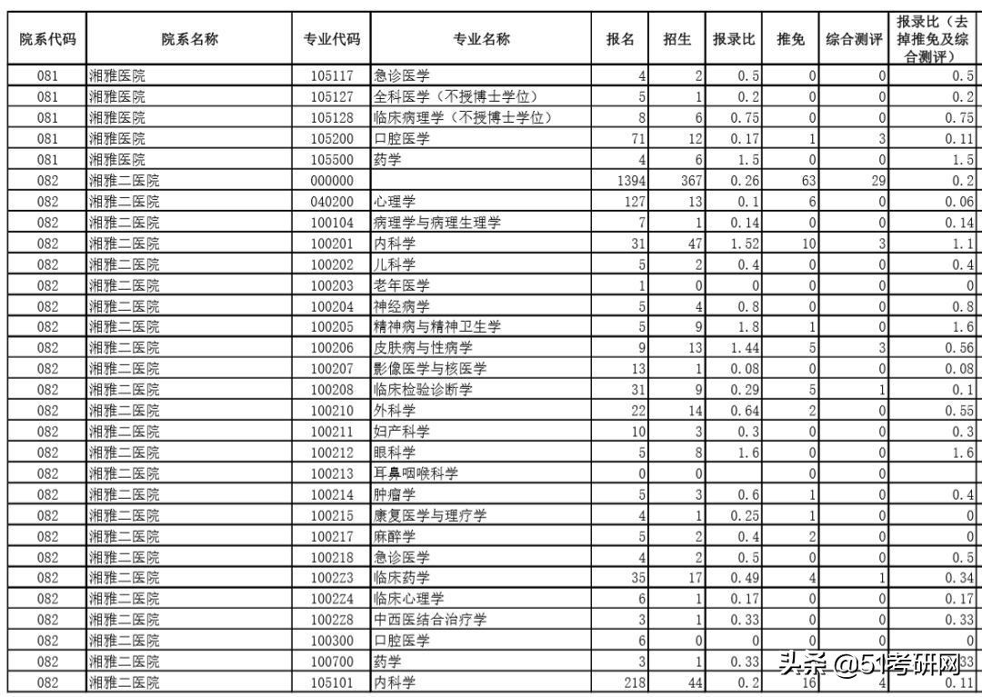 中南大学2019年报录比